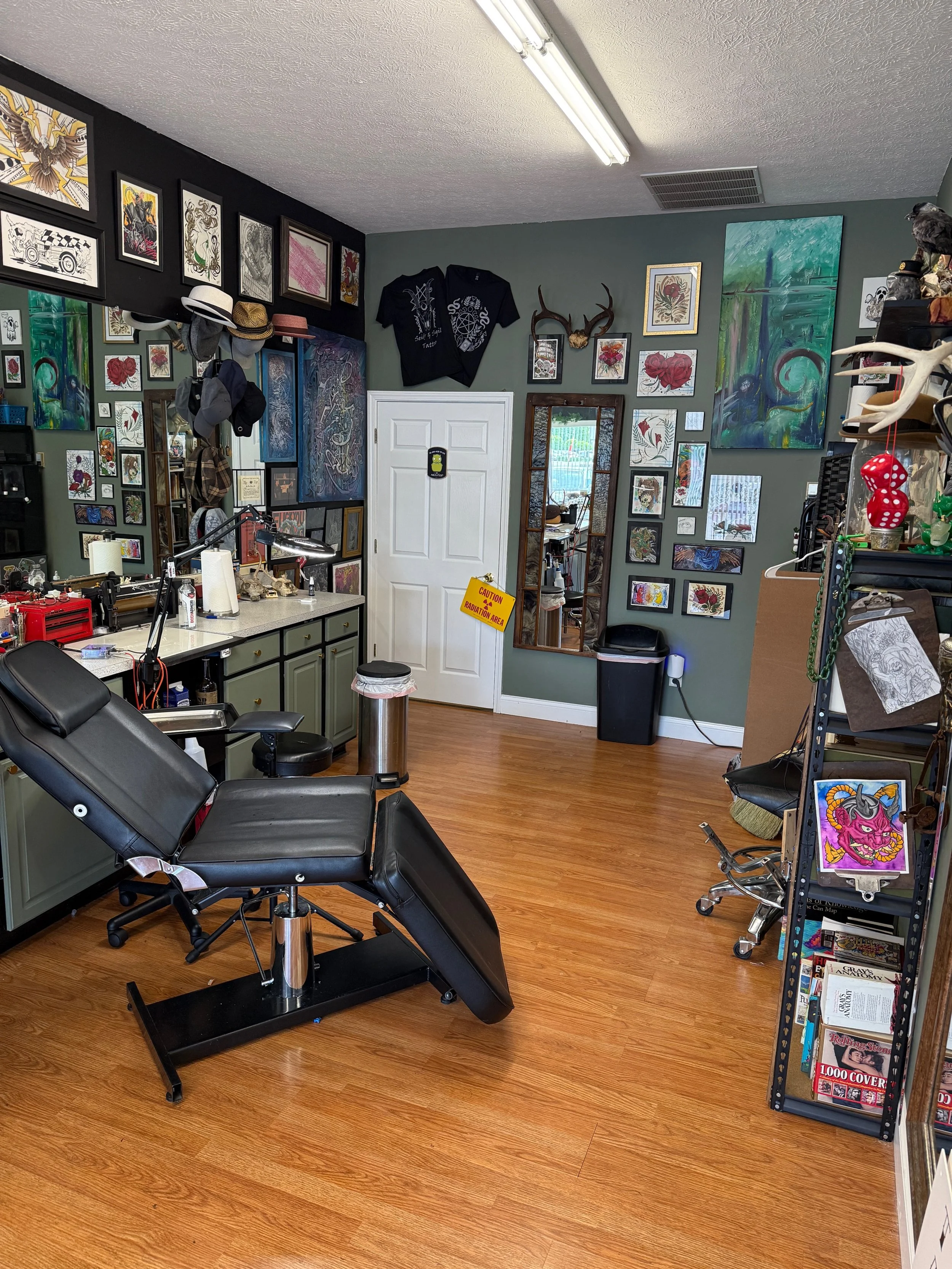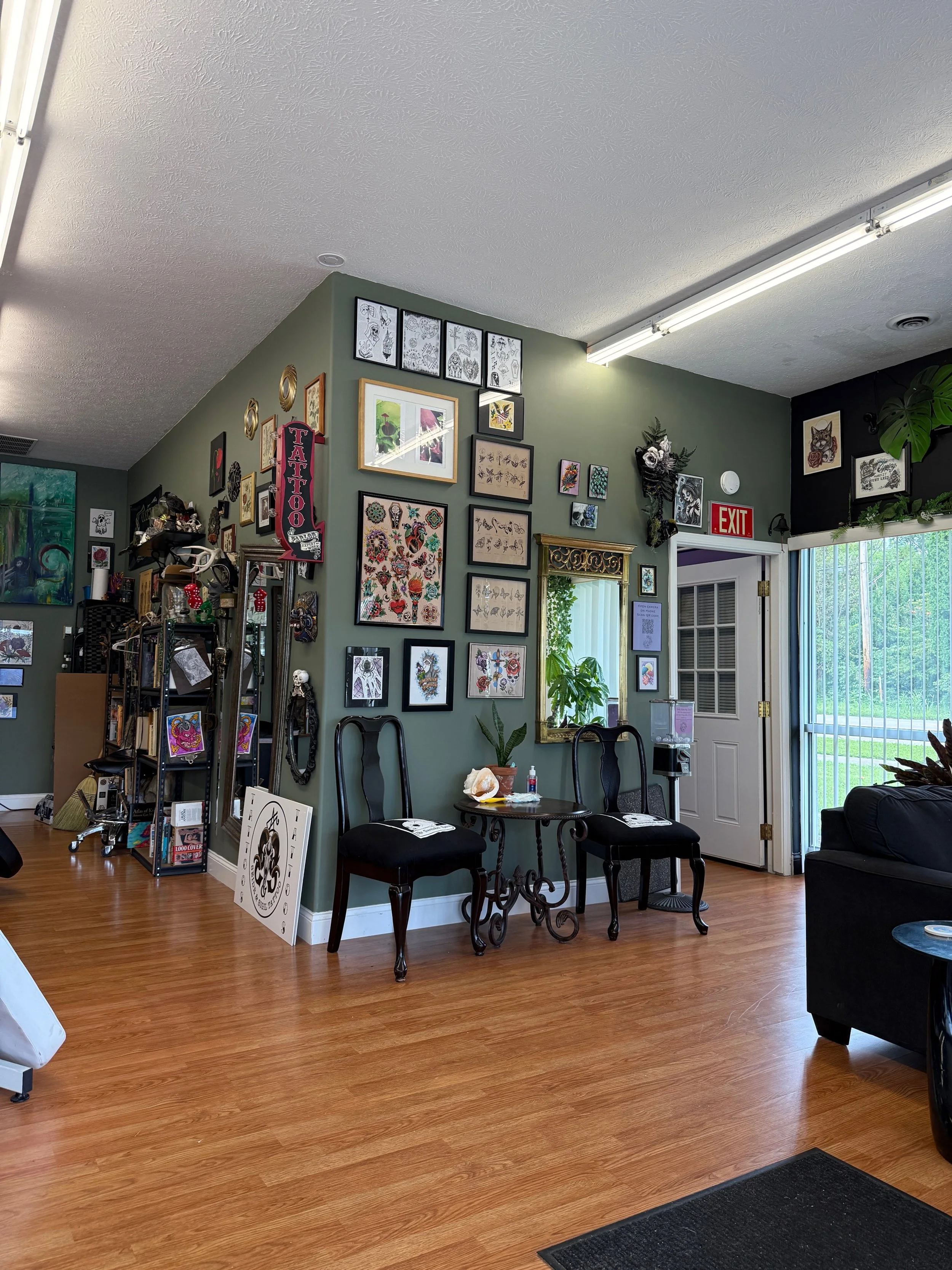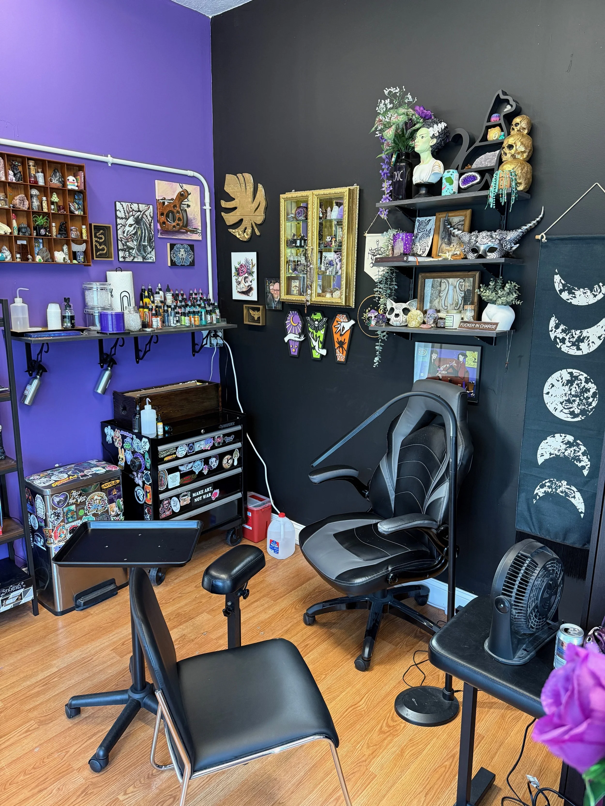 Seidr & Sigil Tattoo is a custom tattoo studio on Bloomington, Indiana’s south side, located by the Bloomington Speedway. Woman and LGBTQ-owned, Seidr & Sigil aims to offer a unique tattoo experience that breaks the mold when it comes to commonality in the tattoo industry. We are a business that aims to give back to and support the community around us all while making you feel more comfortable in your body.