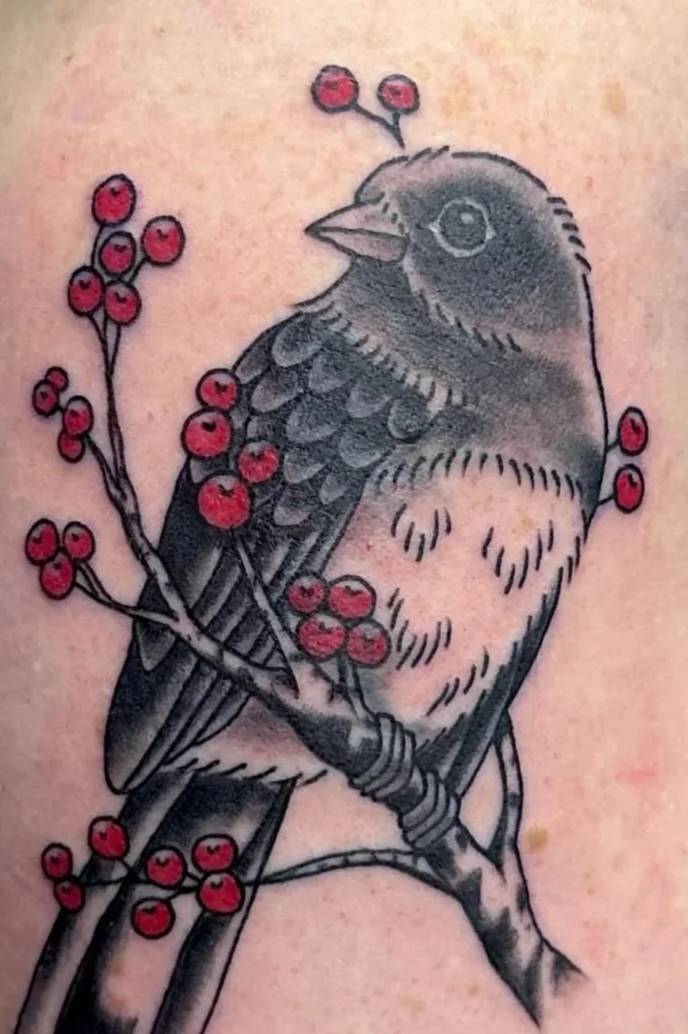 “I won a tattoo in a drawing for my first tattoo at the shop. Raine tattooed a bind rune on me and he did awesome on it. Would definitely go back there again. Very professional and polite and Raine is very creative. The other tattoo artists there at the shop are amazing as well!”